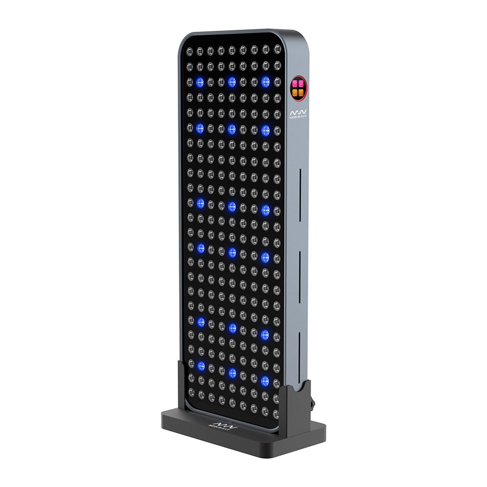 Najnowocześniejsza lampa LED klasy premium do terapii światłem. Oferuje aż 4 rodzaje światła (czerwone, podczerwone, zielone i niebieskie) w 7 precyzyjnie dobranych długościach fal, co czyni ją najbardziej wszechstronnym i zaawansowanym urządzeniem tego typu na rynku. MediWave Smart jest dedykowana do efektywnego naświetlania wybranych partii ciała, zapewniając profesjonalne efekty pielęgnacyjne, regeneracyjne i terapeutyczne w komfortowych warunkach domowych.