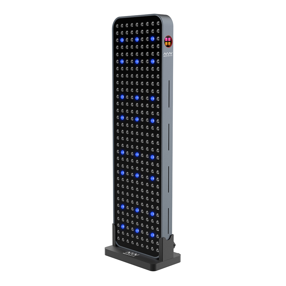 Najnowocześniejsza lampa LED klasy premium do terapii światłem. Oferuje aż 4 rodzaje światła (czerwone, podczerwone, zielone i niebieskie) w 7 precyzyjnie dobranych długościach fal, co czyni ją najbardziej wszechstronnym i zaawansowanym urządzeniem tego typu na rynku. MediWave Pro jest dedykowana do efektywnego naświetlania wybranych partii ciała, zapewniając profesjonalne efekty pielęgnacyjne, regeneracyjne i terapeutyczne w komfortowych warunkach domowych.